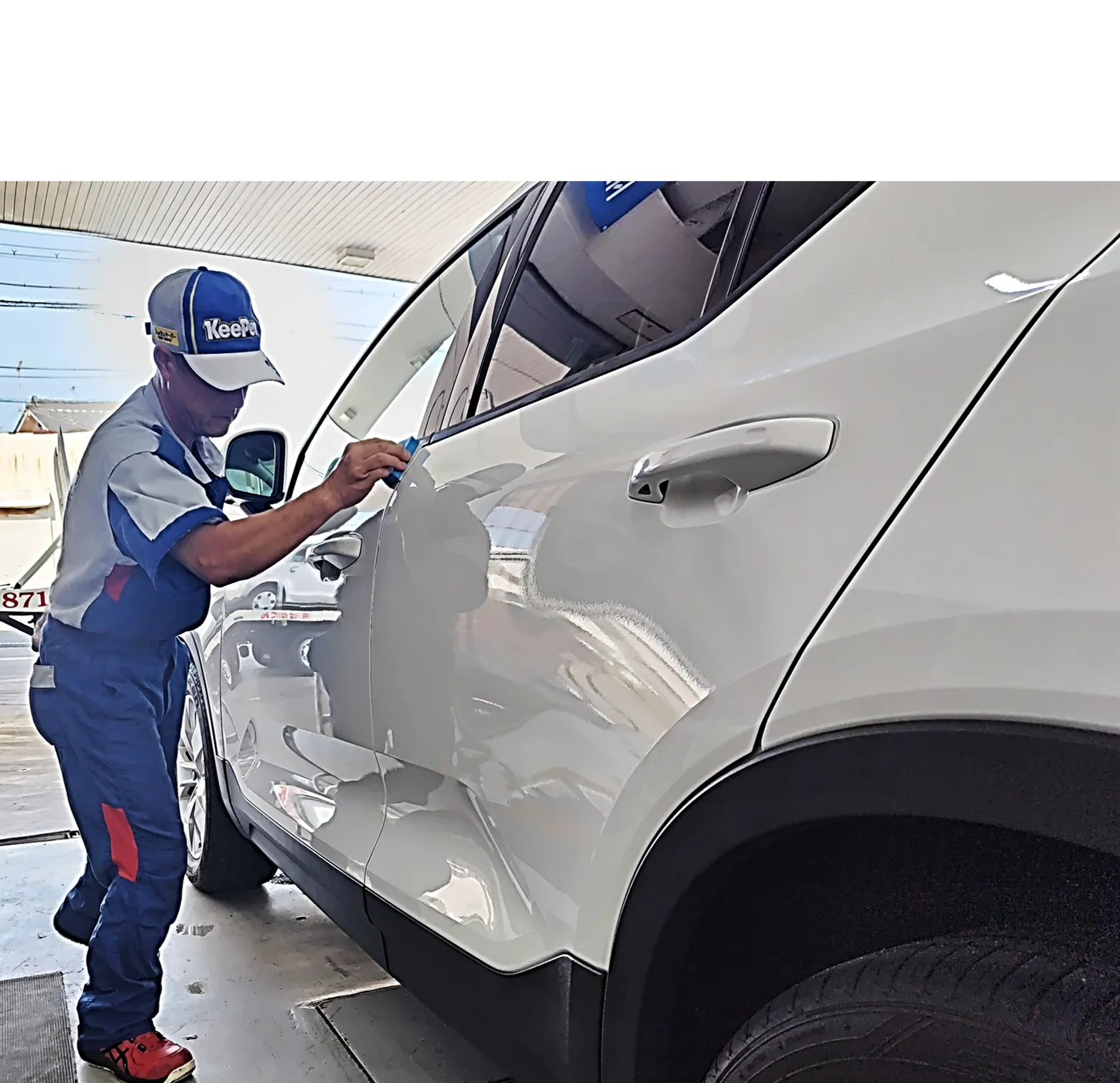 それからダイヤモンドキーパーの効果 作業内容をご案内します 鉄粉除去と細密研磨の下処理で水ジミを目立たなくしてキレイ感が出て 下処理後のコーティング効果でツヤ感が出てくることなど あわせて 施工後の洗車やメンテナンスのご説明も コーティングしていても洗車やメンテナンス、必須なんですね
