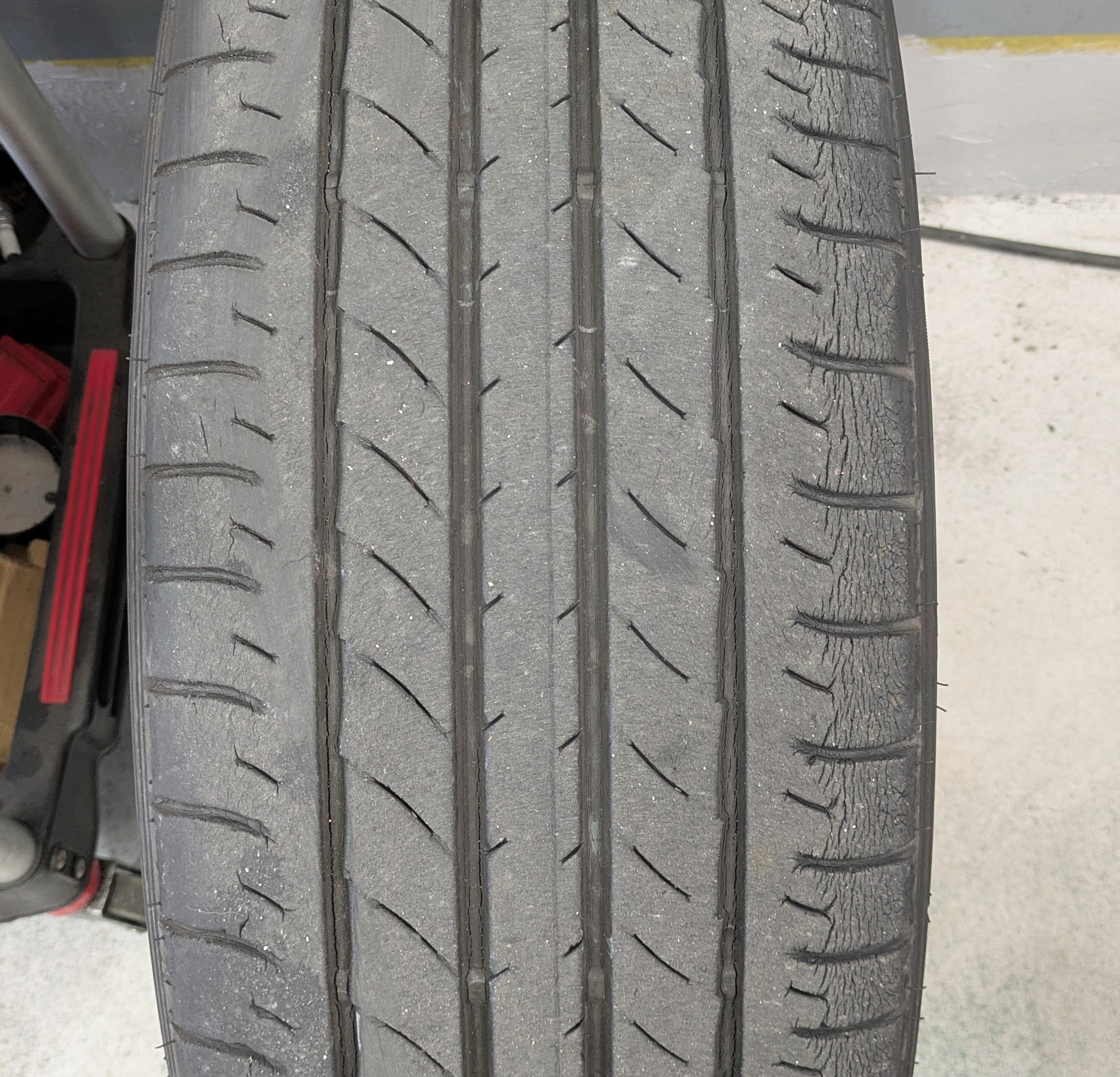 このひび割れは最近のものではありません。タイヤを使用し始めて4~5年ぐらいからひび割れが出始めているはずです。