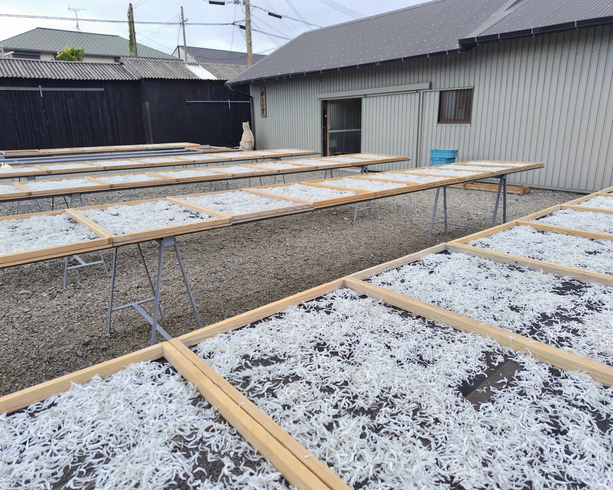 この日はたくさんシラスが獲れたみたいで ずらーっと干してありました 潮の香りがして気持ちいいですね