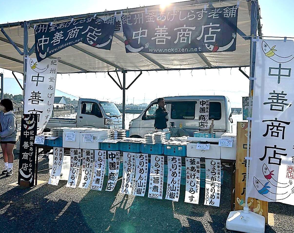 もちろん 中善商店さんも出店されますよ 本脇のお店とは違って にぎやかな和歌浦漁港で 買ったり食べてみたり こんな楽しみ方もいいですね ぜひぜひ行ってみてくださいね