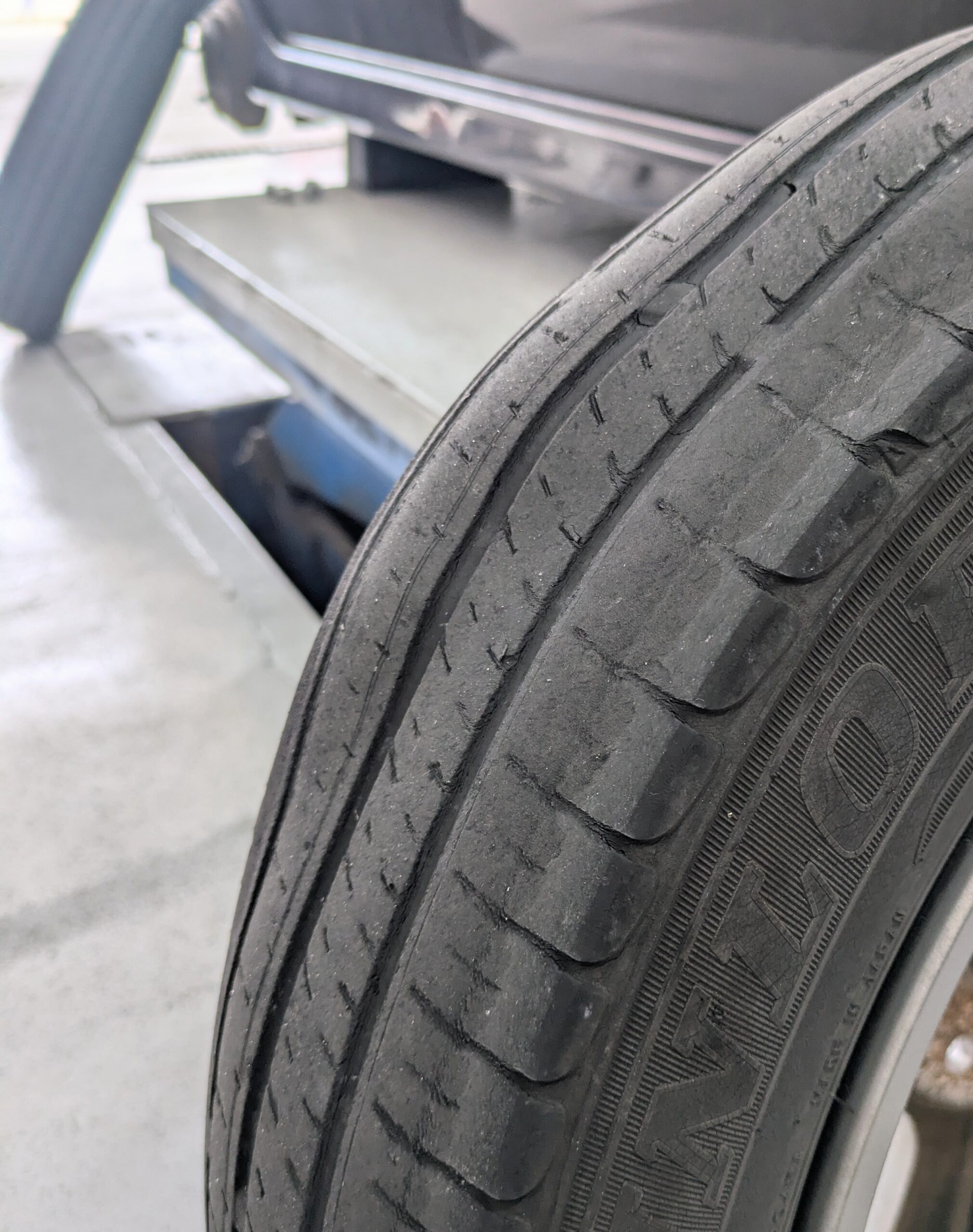 タイヤ点検、特に空気圧点検は月に一度は見た方がいいですよ!高速道路を利用して遠出する際は必ず点検する事をお勧めします。