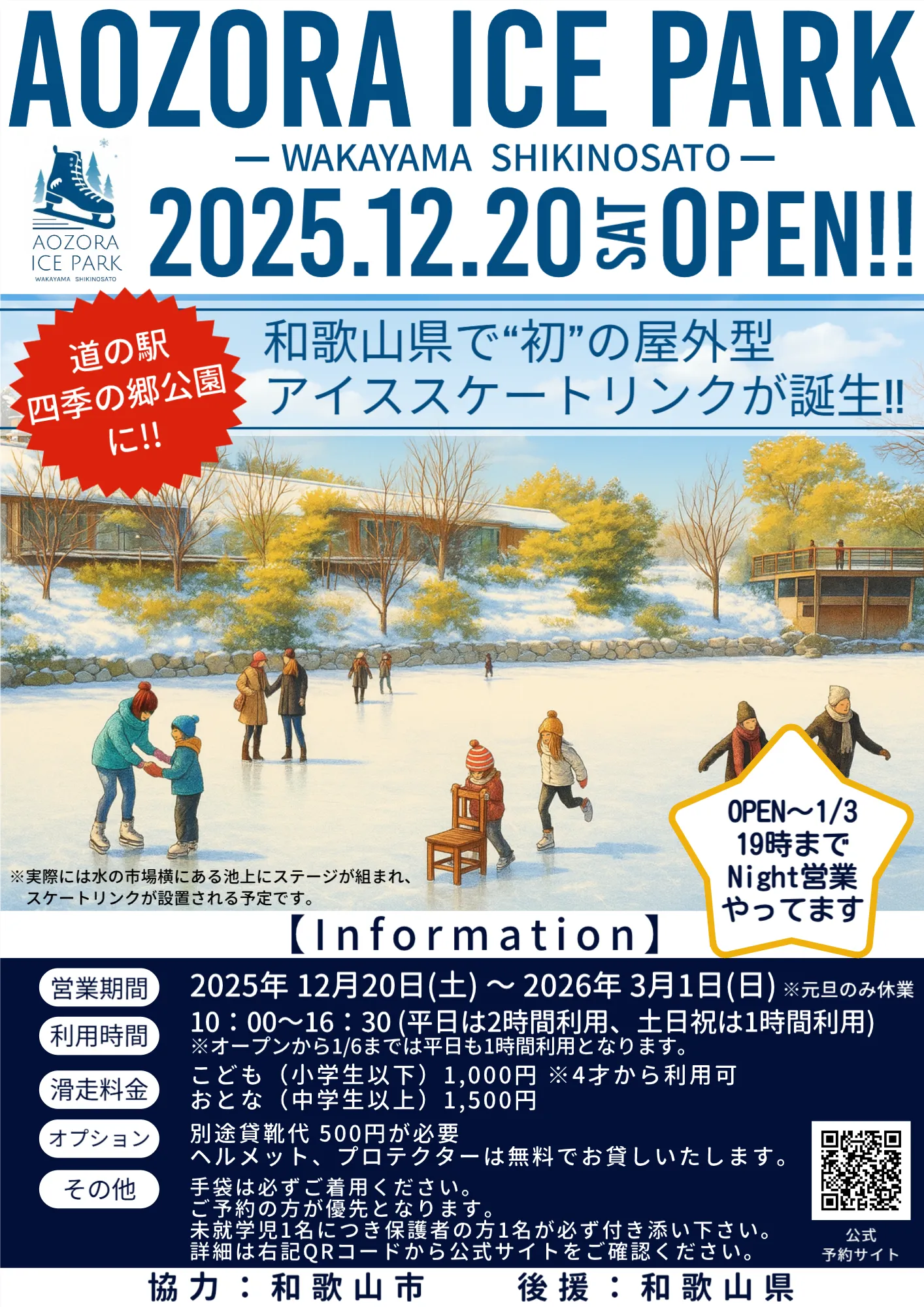 和歌山県で初の屋外型アイススケートリンク・四季の郷公園オープン